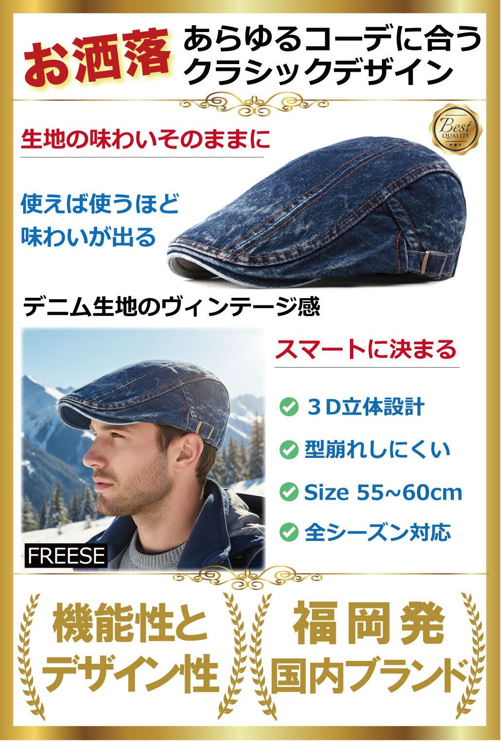 ハンチング 帽子 キャスケットキャップ デニム 綿100% オールシーズン