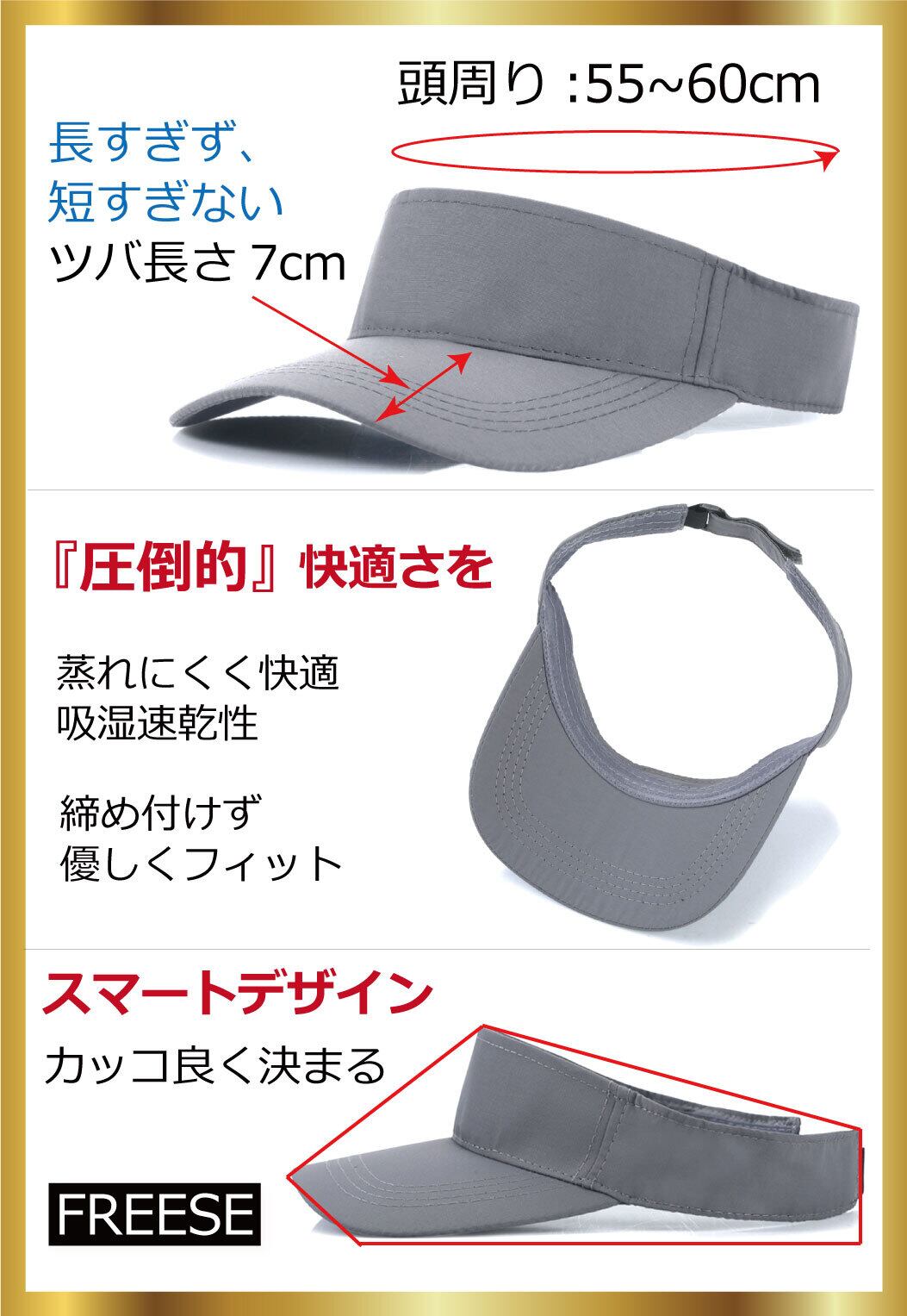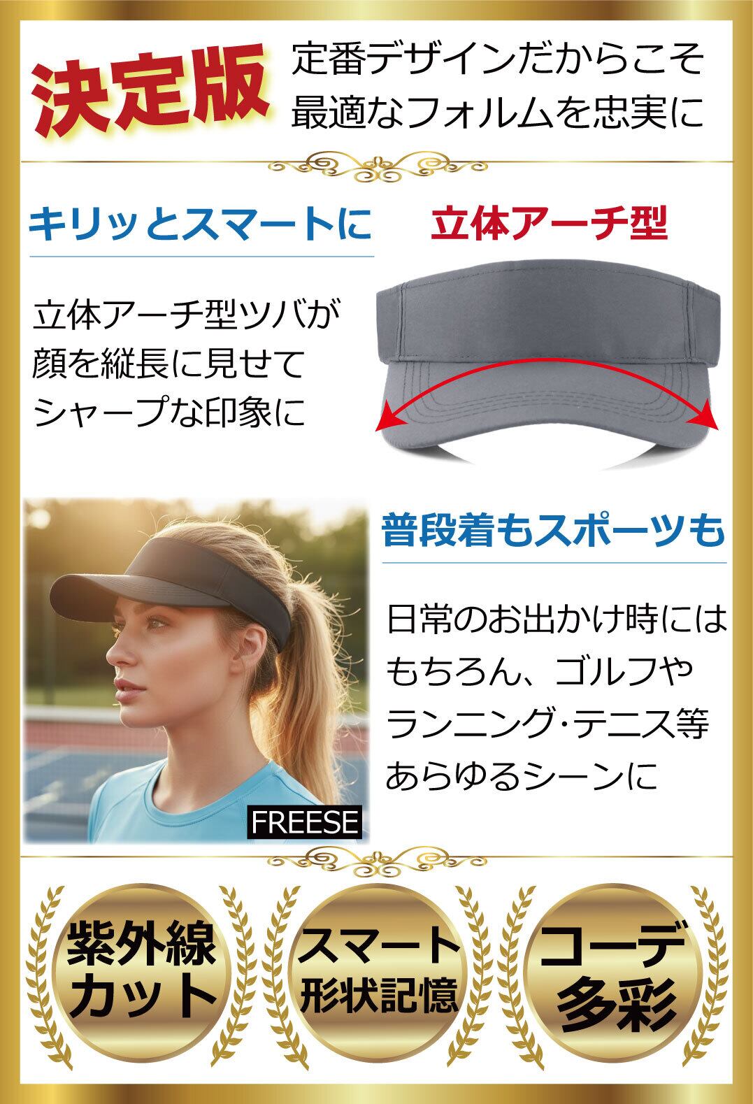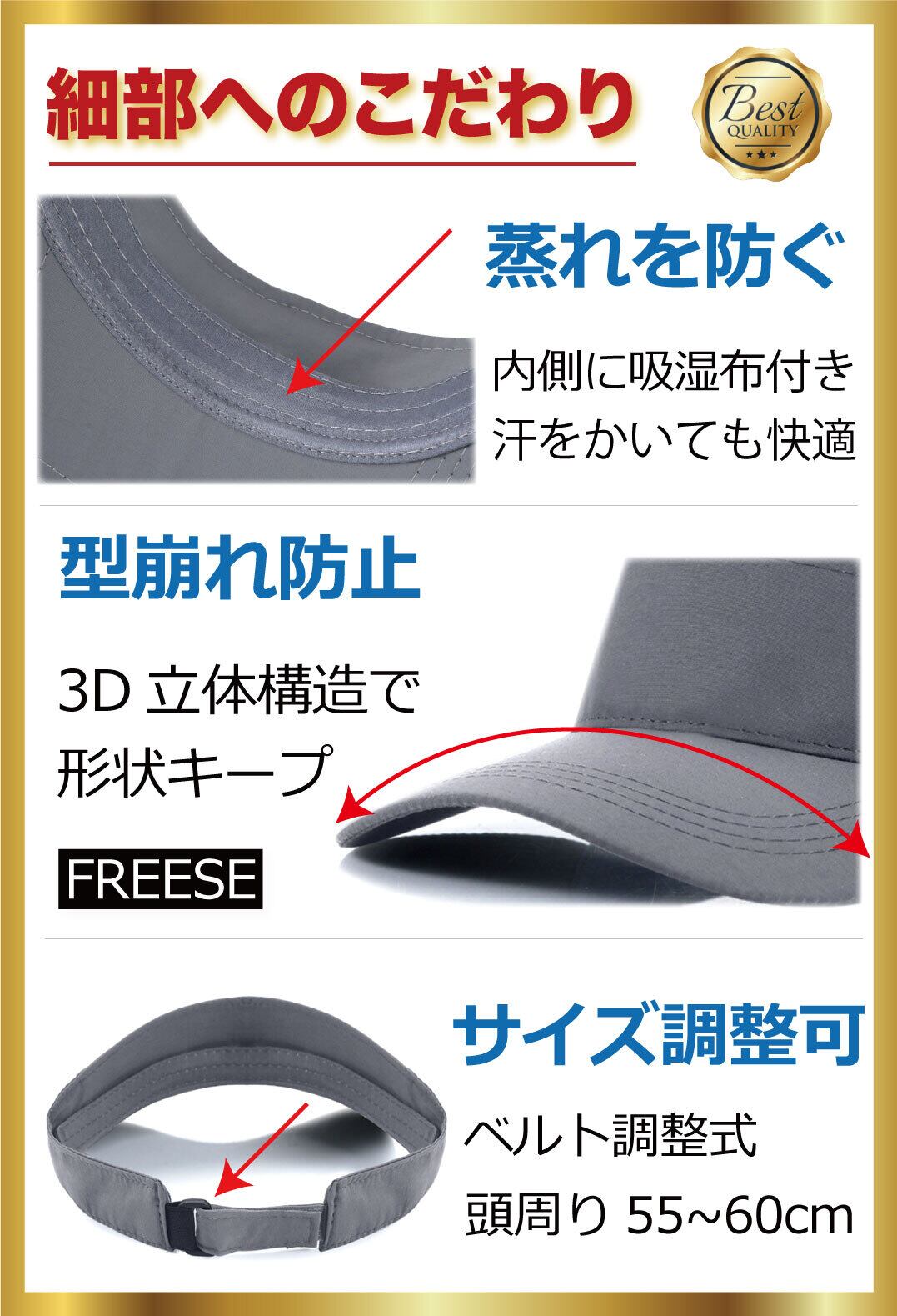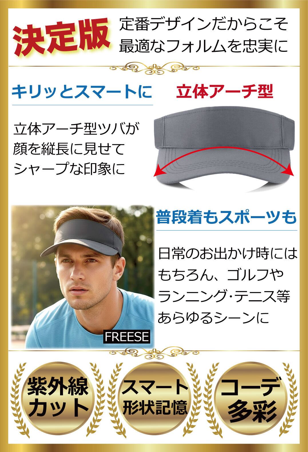 『軽量性・吸湿速乾・UV対策』 ゴルフやジョギングなどのスポーツシーンに活躍。 快適さを追求したサンバイザーです。